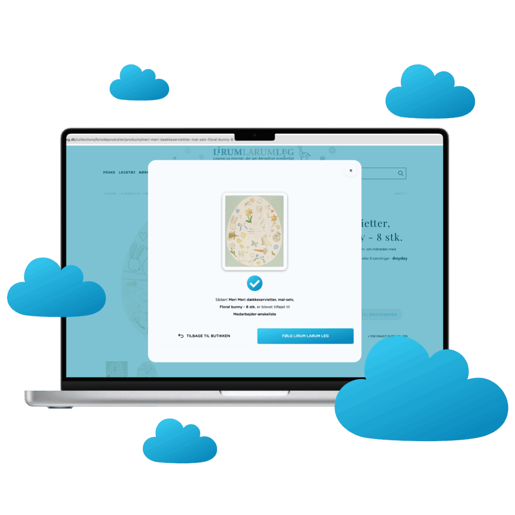 When users add wishes through the Wish Button on your website, they are presented with the option to follow your Brand Wall on Ønskeskyen.