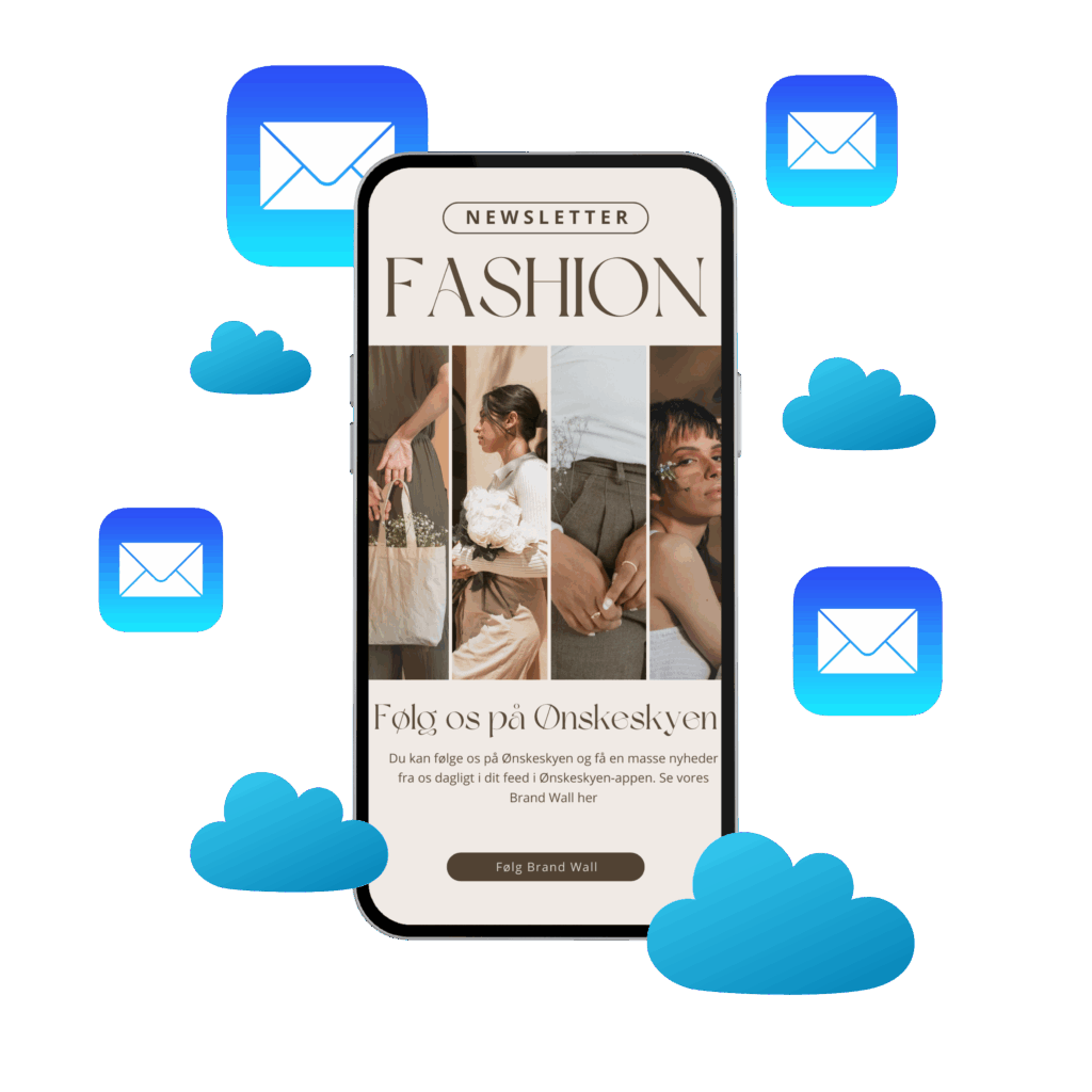 Fortæl dine subscribers af dit nyhedsbrev, at de kan følge din Brand Wall på Ønskeskyen og blive opdateret på dine nyeste produkter, tilbud m.m.